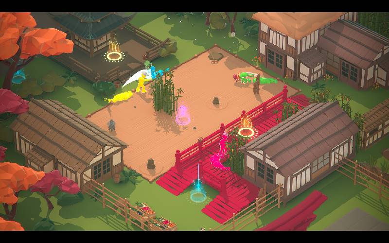 Akuto: Showdown is a fast-paced isometric action game where players compete against one another using swords and guns in intense versus matches developed by Hut 90 fight in low poly arenas where players have to watch out for not only opponents but also the environment from killing them.
