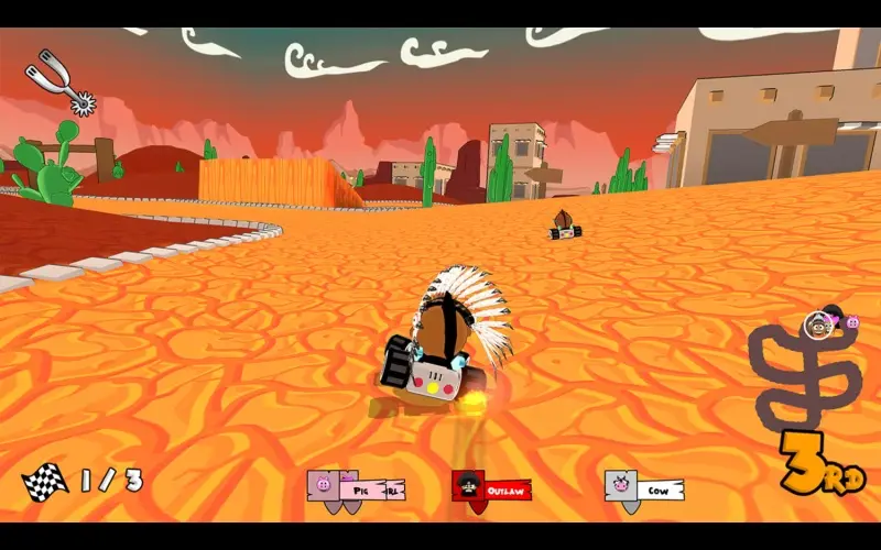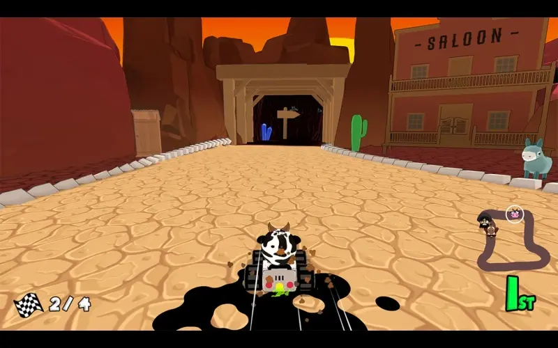 Dusty roads await racers ready to settle scores with speed. They avoid obstacles while racing toward the finish line to claim glory. Gain the lead and challenge friends on split-screen circuits.