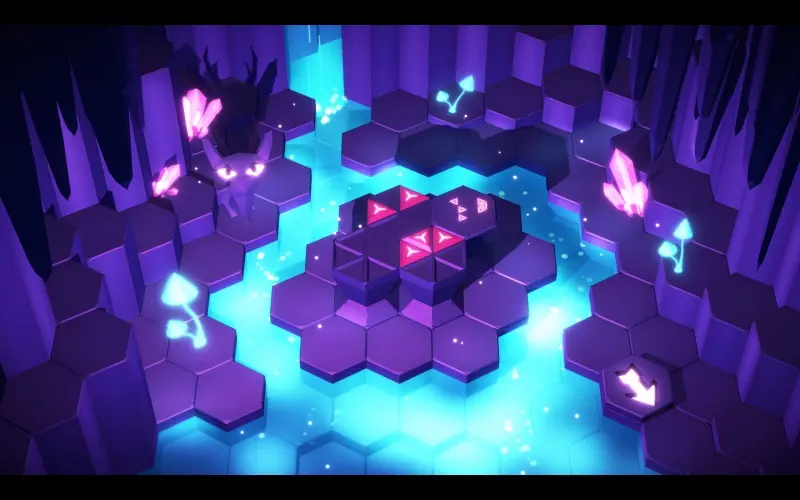A strange forest welcomes you, its heart marked by a hexagonal board and a quiet creature watching nearby. Guided by Fen, you shape the land, grow patterns, and awaken its hidden magic. What begins as a simple puzzle soon reveals a world full of adventure unlike any other.