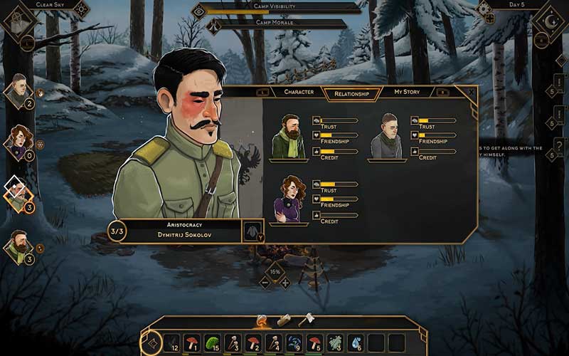 There will be nine unique characters coming from three different society classes. Find out the story of each character that you are in camp with. Build up your camp to add to the chances of survival of your group. Face the dynamically changing weather conditions and all in all immerse yourself in the story of Help Will Come Tomorrow.