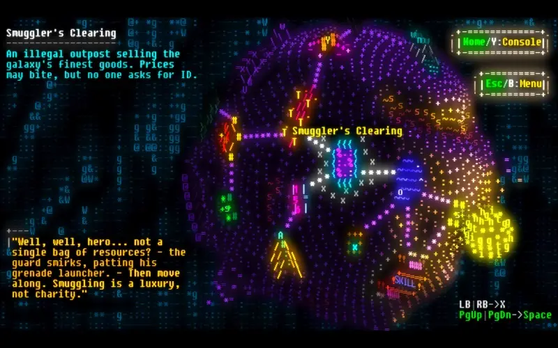 Effulgence RPG is an artistic sci-fi adventure that reimagines ASCII art in a 3D world of light and symbols. Travel beyond the stars, decode cosmic transmissions, and craft your way through mysterious galaxies using particles extracted from defeated creatures. Every symbol tells a story, and every creation shines with meaning.