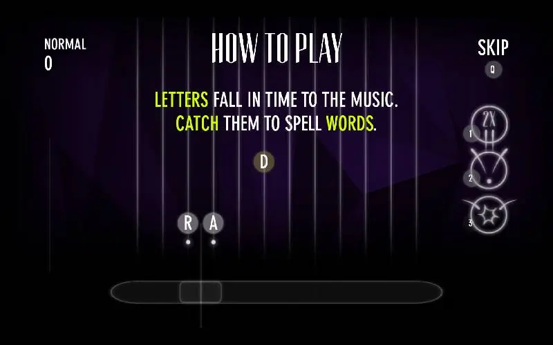 Your quest? Spell words to the beat. Alphabeats blends fast-paced wordplay with pulse-pounding electronic music. Catch falling letters, form words, and ride the rhythm. Choose from built-in tracks or groove with your own custom songs.