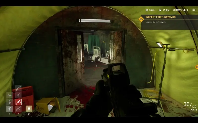 Twenty-eight days ago, your brother’s outpost fell to the undead, and he remains trapped. As the final soldier guarding a northern checkpoint in Chicago, you are required to protect it for thirty days until the Army comes. Your main objective is to fight through the remnants, enhance your weapons, and rescue your brother, a researcher who may know the solution to a cure.