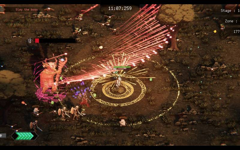 Slay enemies putting a new world in danger as you traverse it. Genesia is an action rogue-lite game where you battle merciless hordes of monsters that number in the hundreds of thousands, cut your way through their ranks, take down the boss, and save one of the many worlds.