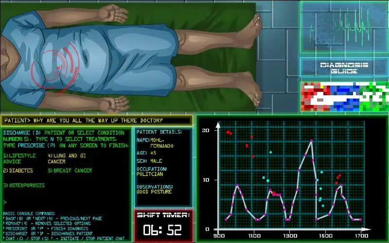 Welcome to the facility, Doctor. You’re a new recruit at a high-tech medical center where trust is scarce, and lives hang in the balance. Diagnose patients, treat diseases, and navigate office politics while hitting strict government targets. Beware of a mysterious hacker whose allegiance is unclear; your choices shape your fate.