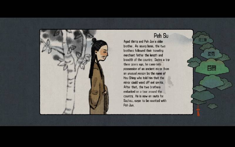 Tales of the Mirror is a stylized visual novel RPG solving a series of mysteries set during the mid and late Ming dynasty developed by Cotton Game. While enjoying the view of the lake, you meet Ren Sanniang she tells you her bitter story, moved by her story you later decide to help her redress the injustices her family had suffered. You need to crack the case within a specified number of days make use of an ancient mirror to reveal the lies and secrets behind the words in your quest for the truth.