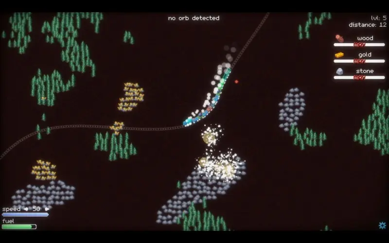 A lone train speeds across changing lands, growing stronger with every upgrade. Collect rare materials and unlock powerful boosts to push farther than before. Strange glowing orbs scattered across deserts, forests, and space hold the secrets to your journey.