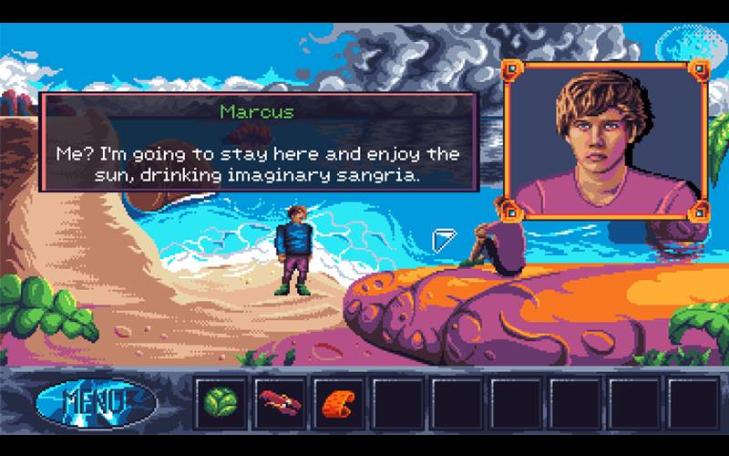 Twilight Oracle is aimed at those who cherish the point-and-click classics from adventure gaming’s past. It features vividly surreal pixel-art graphics, a fantasy-based story, challenging puzzles and surprisingly delightful writing.