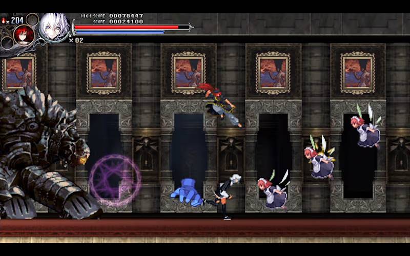 Experience Koumajou Remilia 2 Stranger’s Requiem with Sakuya Izayoi! Navigate through a captivating world, taking on corrupted statues and engaging bosses. Review these features before you begin your journey: